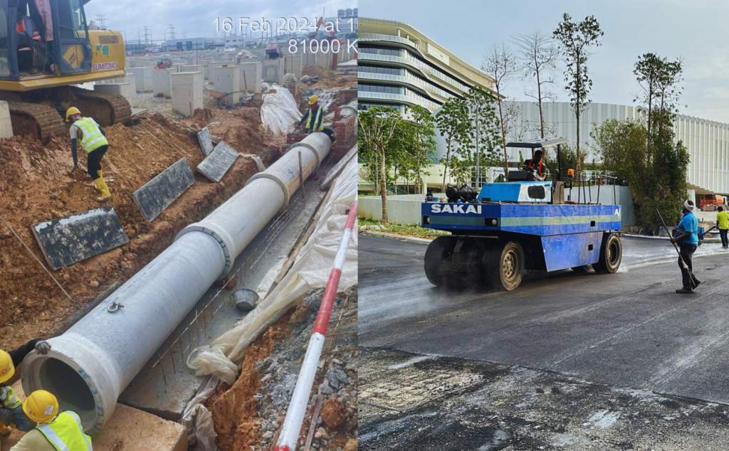 Construction of roads, drainage, utilities, supporting complete infrastructure development.
